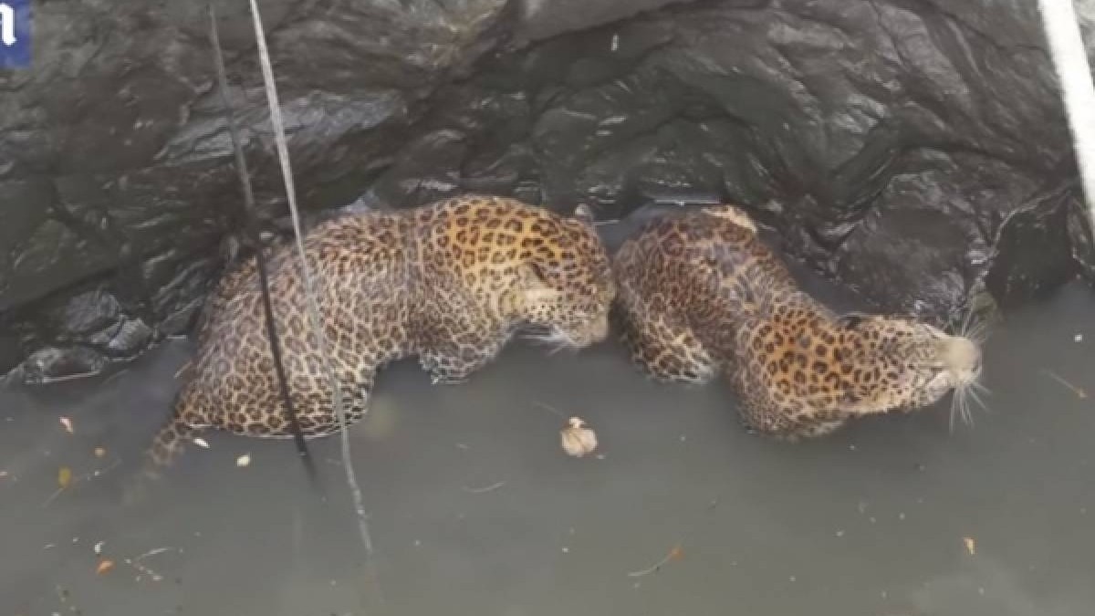Үндістанда бір-бірімен алысқан екі леопард құдыққа құлап кеткен. Жергілікті тұрғындар жануарларды бірден көріп, дереу құтқарушыларды шақырған.