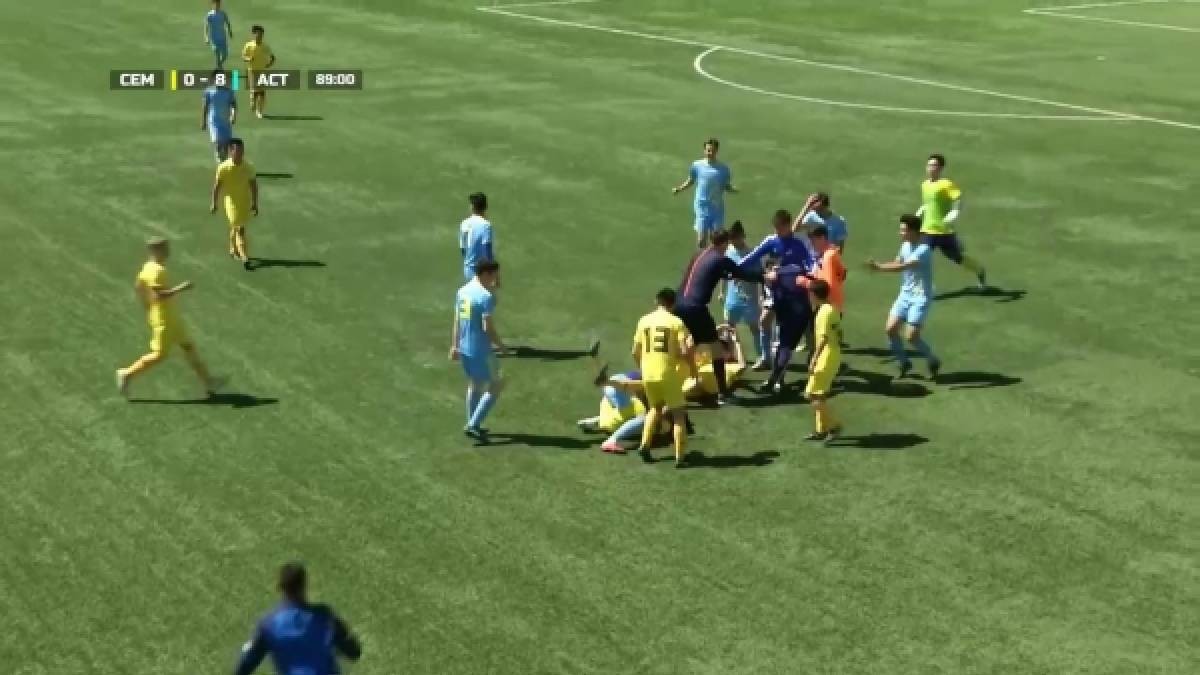Видеошок: Астана мен Семейдің жас футболшылары алаңда жаппай төбелескен