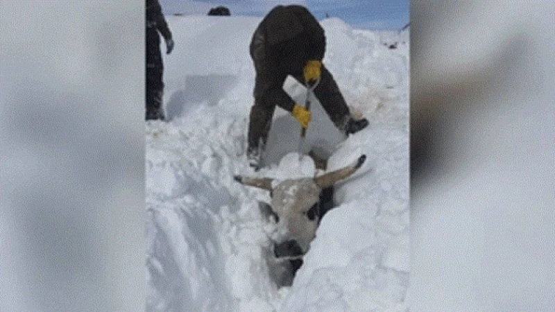Видеошок: Фермер сиырларын қар астынан тірідей қазып алған