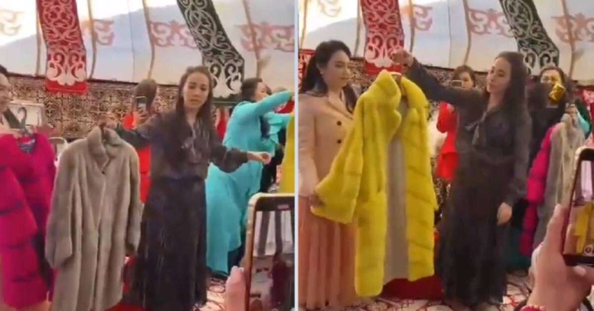 “Қыздың жасауын көрсетейік. Мынау – қызыл тон, мынау  – қара тон. 12 жағалы киім. Әрқайсысын жарқырап киіп жүреді. Заманға сай, қазіргі сәндегі тондар”, – деді таныстырушы.