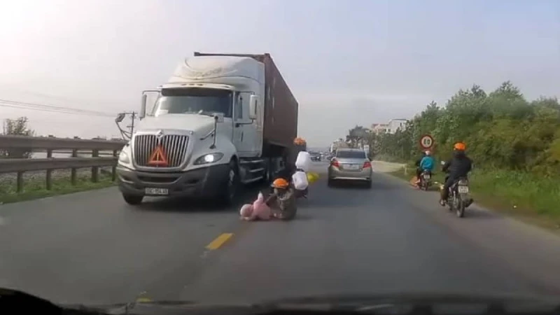 Вьетнамда адам айтса сенгісіз таңғажайып оқиға болды. Видеотіркегішке мотоциклмен келе жатқан ана мен баланың құлаған сәті түсіп қалған