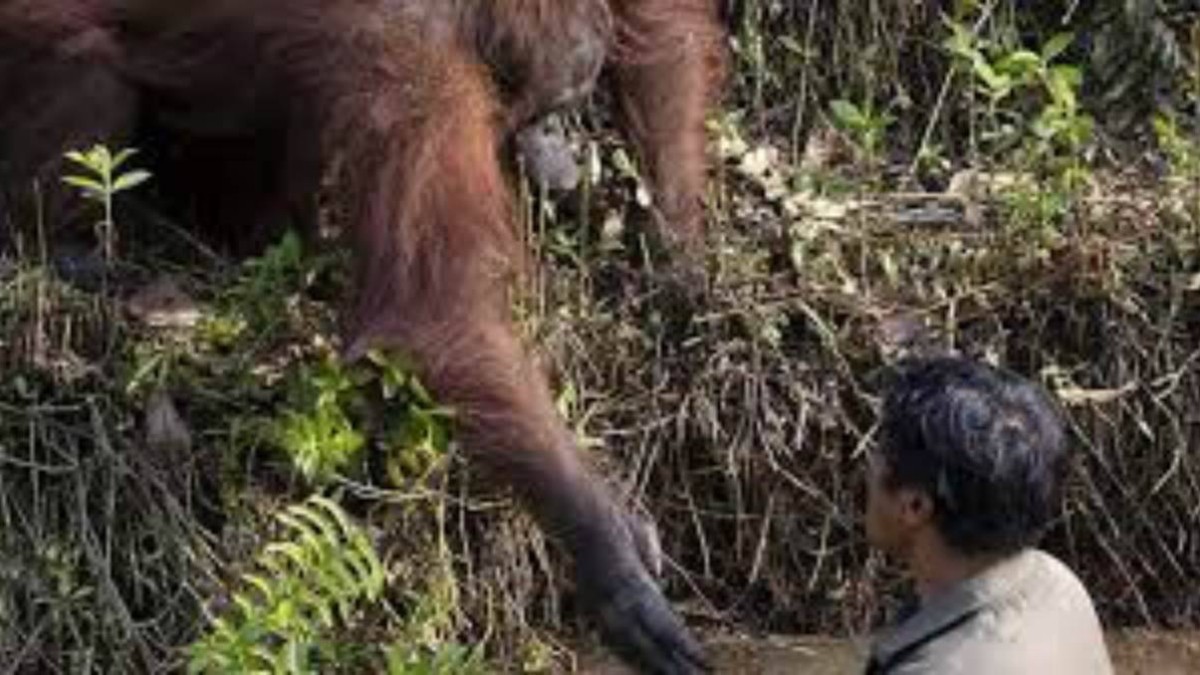 Борнео аралында жануарлар қорғаушысы осы ауданда тұратын маймылдарды қауіпсіздендіру үшін жыландарды аулаған. Осы кезде орангутан адамға көмектескісі келіп, қолын созды, деп хабарлайды Stan.kz ақпарат агенттігі.