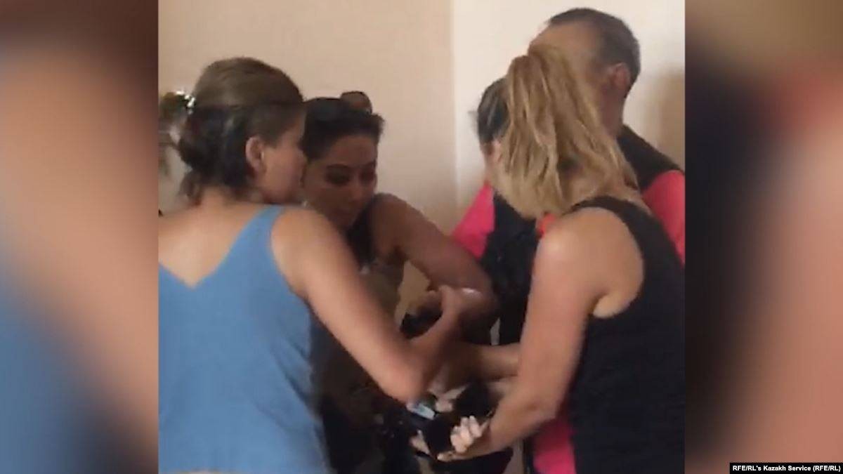 Алматыда журналистерге жасалған шабуылдан кейін Азаттықтан кешірім сұраған екі әйелдің сөзі жазылған видео 23 шілдеде интернетте жарияланды. Түн мезгілінде түсірілген видео YouTube-те былтыр тіркелген "Мас Киеубала" каналында жарияланған. Онда аты-жөнін атамаған әйелдер Алматыдағы адам құқығы мен заңдылықты сақтау бюросының "баспасөз залына кіре алмай, дөрекі сөз естігеннен кейін" әлгіндей қылыққа баруға мәжбүр боланын айтады.