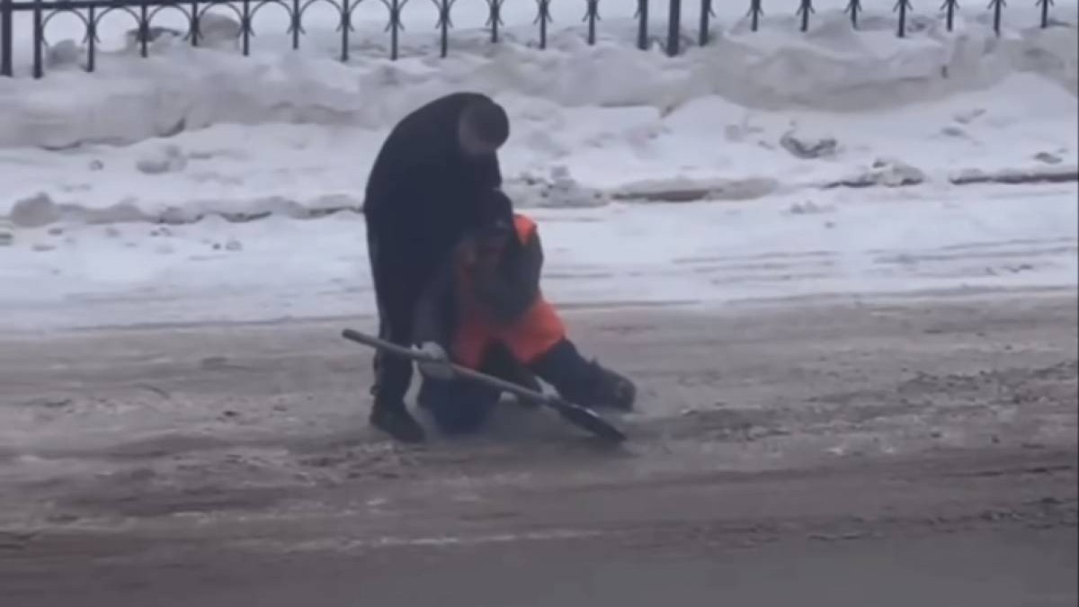 Кадрларда жол жиегінде тұрған көліктің жүргізушісі қарапайым жұмысшымен өте дөрекі сөйлескен. Жұмысшы жанжалдан қашпақ болғанымен, көлік жүргізушісі көшенің келесі бетіне өтіп, киімінен жұлқылап, тізе бүктірген.