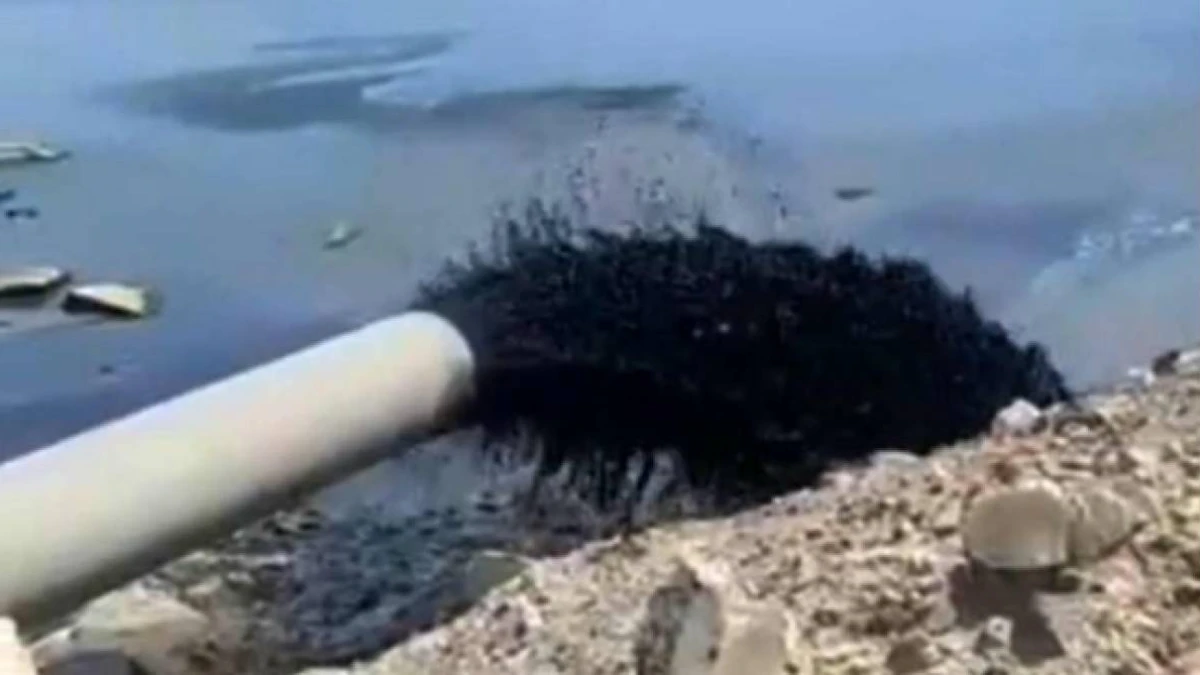 Кадрлардан қанық қара түсті сұйықтық құбырдан күшті қысыммен ағып жатқанын көруге болады.