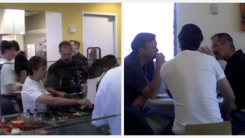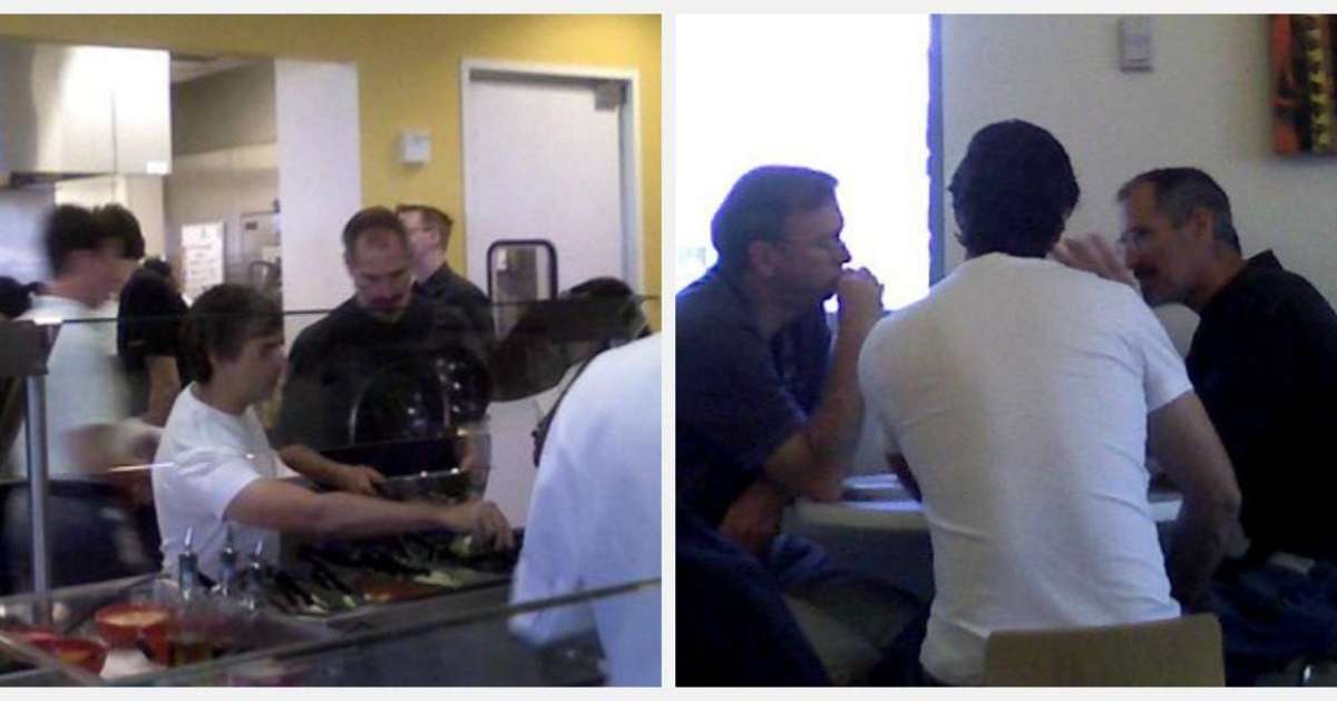 Жарияланымда Джобсты Google-дің негізін қалаушы Ларри Пейджмен және Google-дің бұрынғы бас директоры Эрик Шмидтпен бірге көруге болады. Фотосуреттерде олар компанияның асханаларының бірінде болып, алдымен салаттарды таңдап, содан кейін үстел басына отырады және бірнәрсені талқылайды.