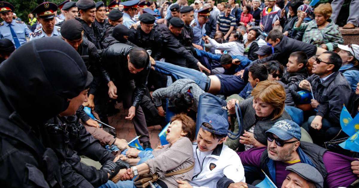 Полиция қызметкерлері көліктерге жаңадан адамдарды әкеле бастады. Қарсы шыққандарды ішке күштеп кіргізіп жатты. Екі әйелді сүйрелей жөнелгендерінде сол маңдағы адамдар араша түсіп, біреуі сытылып үлгерді.