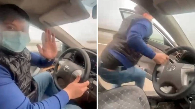Жақында әлеуметтік желіде тағы бір даулы видео жарияланды. Онда Toyota Camry жүргізушісі жүріп келе жатқан машинадан шығып, асфальтта аяғымен сырғанайды.