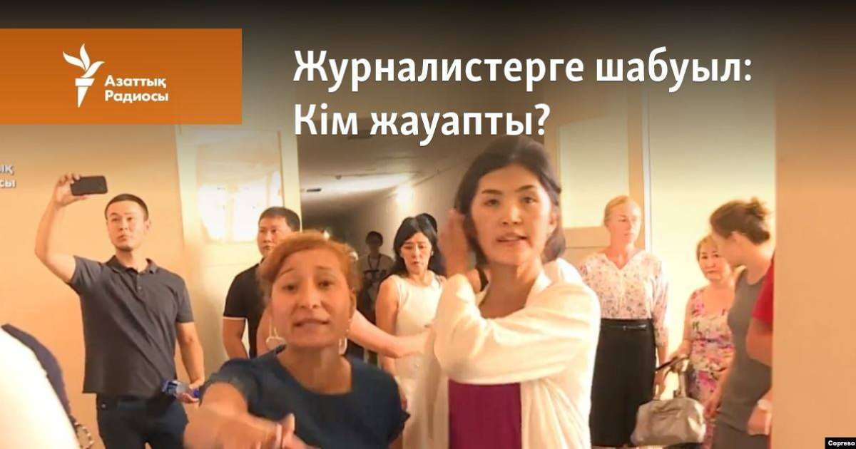 Ғимарат дәлізінде Азаттықтың түсірілім тобына белгісіз бес әйел тарпа бас салды. Олар Азаттық операторы Тоқмолда Құсайыновқа шабуылдап, оның қолындағы видеокамераны сындырып, аккумуляторын суырып алды. Болған оқиғаны смартфонға түсіріп алмақ болған тілші Нұргүл Тапаеваға қол жұмсады.